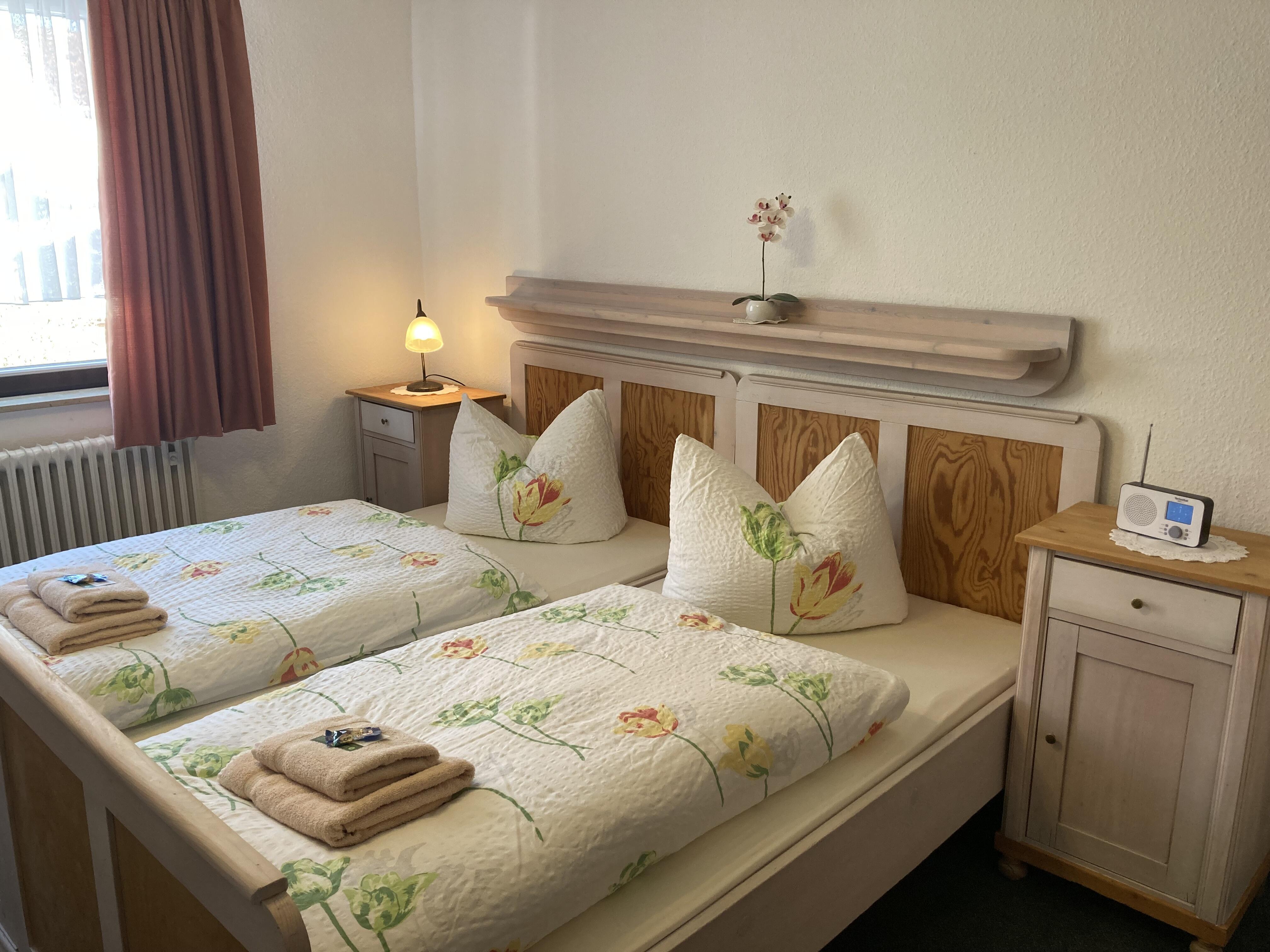 Unsere Zimmer befinden sich in unserem Wohnhaus im 1. OG. Sie sind im Landhausstil gemütlich eingerichtet. Die Zimmer sind immer mit Handtüchern und Bettwäsche ausgestattet und werden täglich von uns gereinigt. Ein großer, überdachter Gemeinschafts-Balkon steht für alle Gäste in den Zimmern zur Verfügung. Ebenso ein Aufenthaltsraum sowie der Garten vor dem Haus. Frühstück gibt es von 8.00 bis 9.30 Uhr. Die Zimmer stehen am Anreisetag ab 15.00 Uhr zur Verfügung. Am Abreisetag bitten wir Sie, diese bis 10.00 Uhr zu räumen.