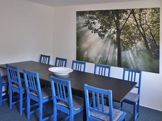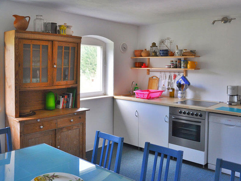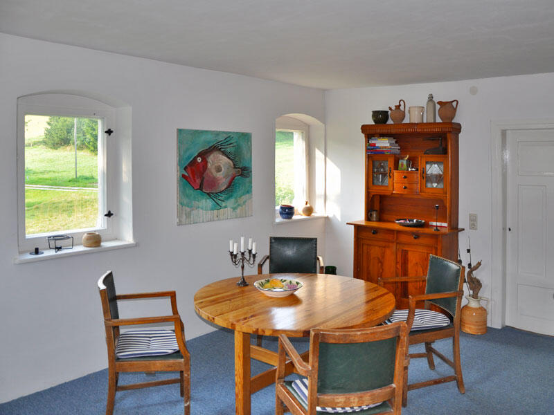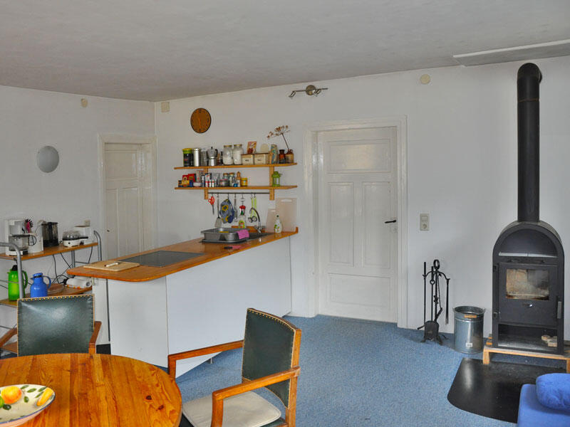 Im Mühlenhof gibt es 2 Ferienwohnungen für insgesamt 12 Personen, sie befinden sich im OG, im EG ist der Eingangsbereich, eine Sauna, eine Waschmaschine sowie Lagerräume. Die kleinere Ferienwohnung ist für max. 5 Personen und hat einen Wohnraum mit einer gut ausgestatteten Kochecke, Kaminofen und einem Schlafsofa für eine Person, ein Doppelzimmer, ein Schlafzimmer mit Etagenbett und ein Bad mit Dusche. Die größere Ferienwohnung ist für max. 7 Personen und hat einen Wohnraum mit einer gut ausgestatteten Kochecke + Geschirrspüler, 3 Doppel- und ein Einzelzimmer sowie ein Bad mit Dusche. Beide Wohnungen sind gut ausgestattet und mit ansprechenden, überwiegend modernen Möbeln eingerichtet.