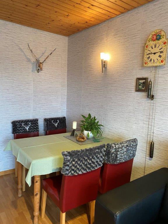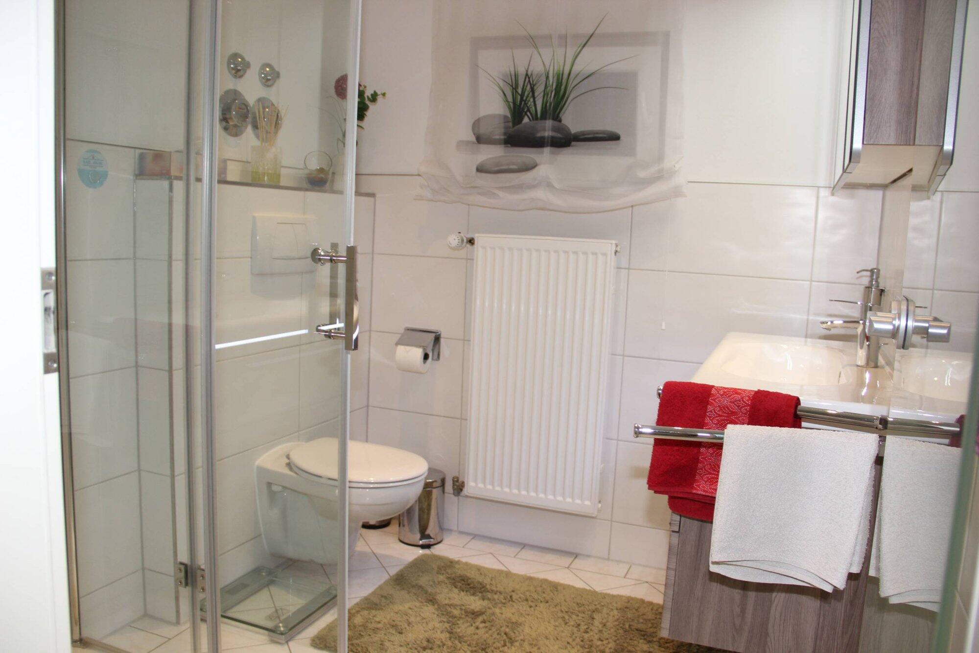 Unsere Ferienwohnung ist 2019 teilrenoviert und vom Deutschen Tourismusverband zum wiederholten Mal mit 4 Sternen ausgezeichnet worden (bei Belegung mit 2 Personen). Die Wohnung bietet Platz für 4 Erwachsene und 1-2 Kinder. eigener Eingang Eltern-Schlafzimmer mit Doppelbett, zusätzlichem Waschbecken, Zugang zur Terrasse, TV Kleinkinderzimmer, direkter Zugang vom Elternschlafzimmer Wohn-Schlafzimmer mit 2 Schrankbetten, Essbereich und Couchecke 2 Flachbild-TV, Radio mit CD, DVD-Player,Videorekorder Komplett ausgestattete Küche mit Cerankochfeld, Kühlschrank mit Gefrierfach, Geschirrspüler, Mikrowelle, Kaffeemaschine, Wasserkocher, Toaster, Bad mit Dusche und WC, Kosmetikspiegel, Fön, Seifen-, Duschgel- und Shampoospender geräumiger Flur separate Sonnenterrasse mit Liegewiese Autoabstellplatz direkt vor der Tür kostenloses WLAN Waschmaschine, Bügelbrett, Bügeleisen Für Ihr Kleinkind: Kinderhochstuhl, Gitterbett, Wickeltisch, Kinderspiele Spielplatz am Haus, Abenteuerspielplatz in 300 m Entfernung.