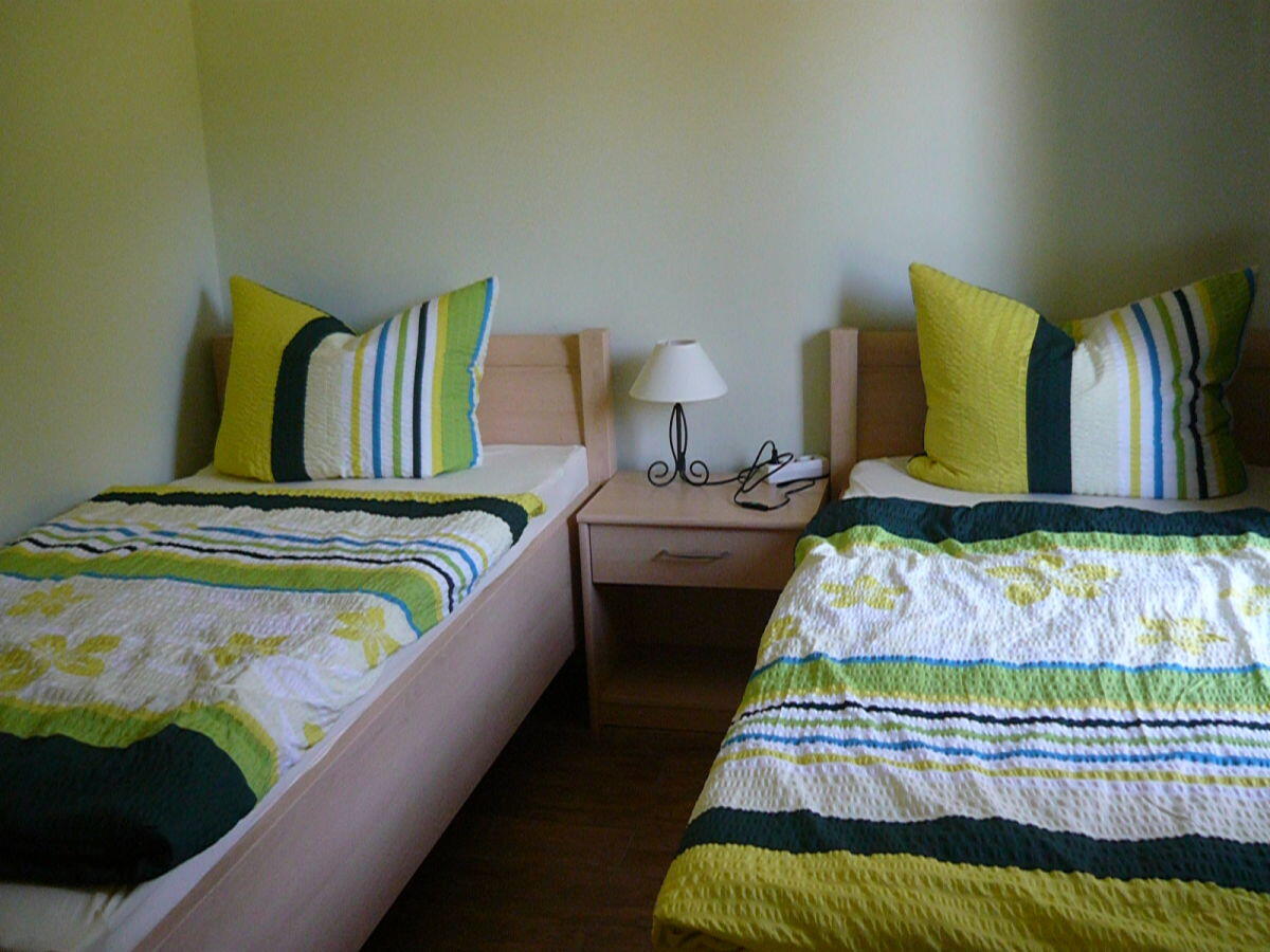 Es gibt 2 Schlafzimmer, eins mit Doppelbett und das andere mit 2 Einzelbetten. Das Bad hat eine ebenerdige Dusche, Waschbecken und WC sowie eine Waschmaschine. Einzigartige Lage auf 3ooo qm großem Grundstück am Zwischenahner Meer.