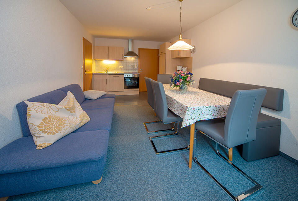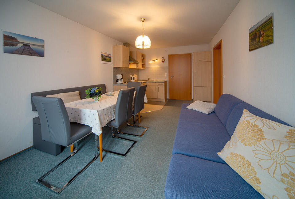Unsere gemütlichen Ferienwohnungen mit freiem Blick auf die Allgäuer Alpen laden zu einem entspannten Urlaub mit der ganzen Familie auf dem Land ein. Jede Wohnung ist vom DTV mit 3 Sternen klassifiziert und voll ausgestattet mit Bettwäsche und Handtüchern, Flachbild-TV, die Kücheneinrichtung ist komplett und sorgt für einen unabhängigen Aufenthalt. Freuen Sie sich auf ein sonniges Frühstück auf unserem Balkon mit Blick ins Grüne und über das Örtchen Rückholz auf das Bergpanorama.