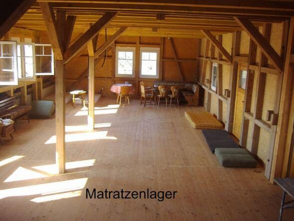 Sie möchten bei uns campieren und nur mit einem Rucksack als Gepäck reisen? Kein Problem, auch an Sie haben wir gedacht. Ein weiteres Scheunendachgeschoß steht als Übernachtungsmöglichkeit zur Verfügung, Sie bringen einfach nur eine Isomatte und einen Schlafsack mit.