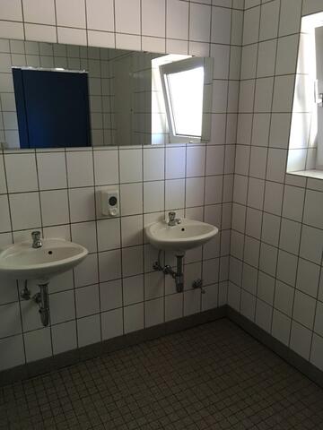 eine Boulebahn, eine Tischtennisplatte und zwei Spielplätze (Rasen- und Sandspielplatz).