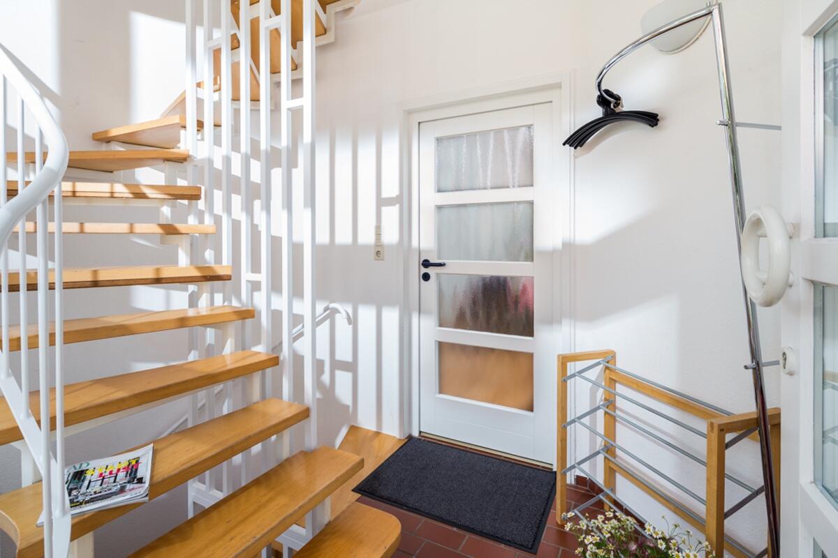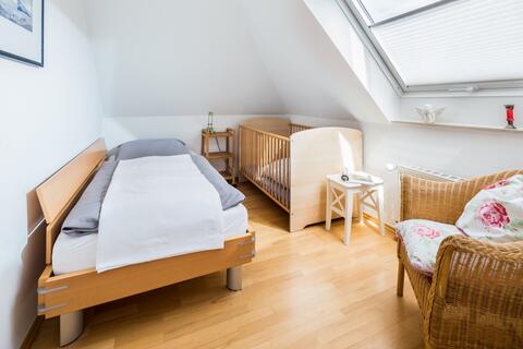 Die drei Schlafzimmer befinden sich auf zwei Etagen. Das untere Schlafzimmer verfügt über ein Doppelbett 2,00m x 1,60m. Eine Friesentreppe im Flurbereich führt Sie nach oben in die beiden weiteren Schlafzimmer. In einem befindet sich ein Doppelbett 2,00m x 1,40m, in dem anderen befindet sich ein Doppelbett 2,00m x 2,00m das auch als zwei Einzelbetten gestellt werden kann. Träume werden wahr, schauen Sie nachts in den Himmel und zählen die Sterne.