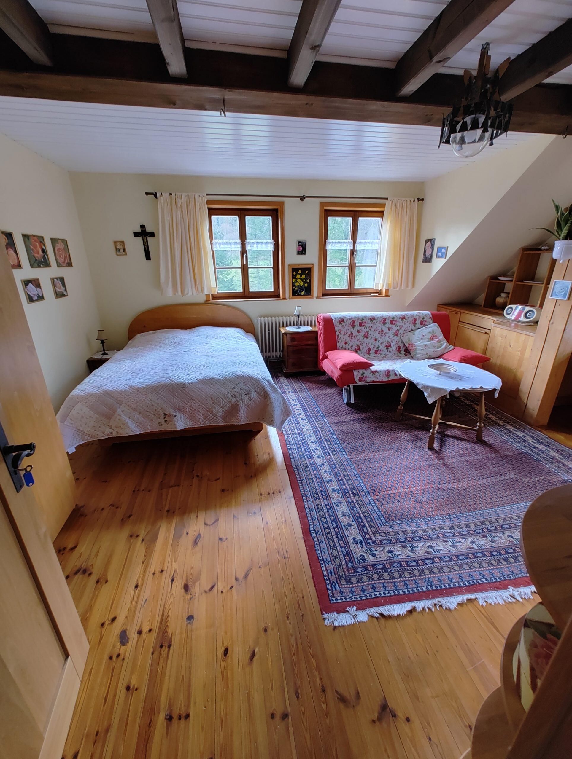 Wohn-/Schlafraum mit Doppelbett (1,40 x 2,00 m) + Sofa auch als Bett (1,40 x 2,00 m) nutzbar.