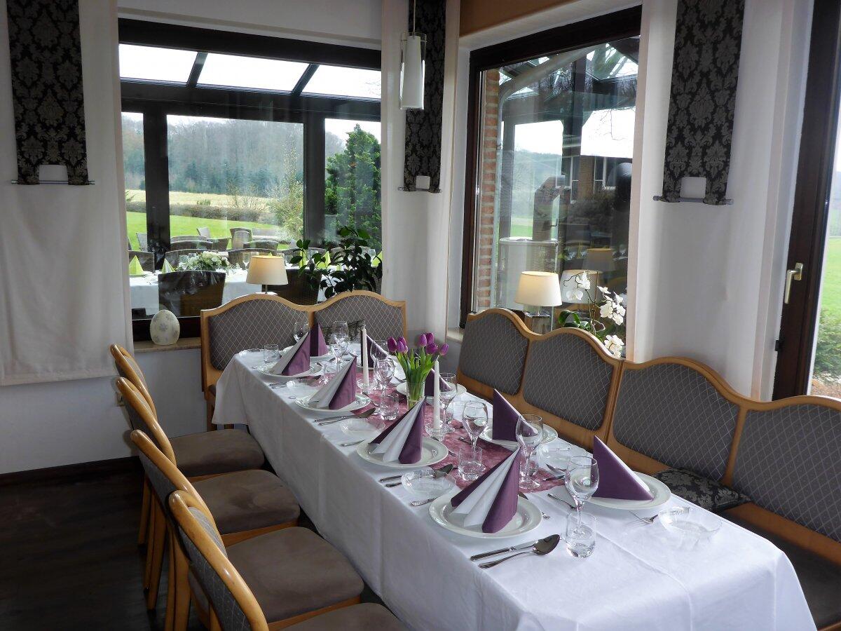Genießen Sie das besondere Ambiente unseres Hauses mit der schönen Aussicht, leckere regionale Gerichte und saisonale Spezialitäten unseres Restaurants sowie unsere beliebten selbst gebackenen Kuchen und Torten im Café und lassen Sie sich und Ihre Gäste von uns verwöhnen.