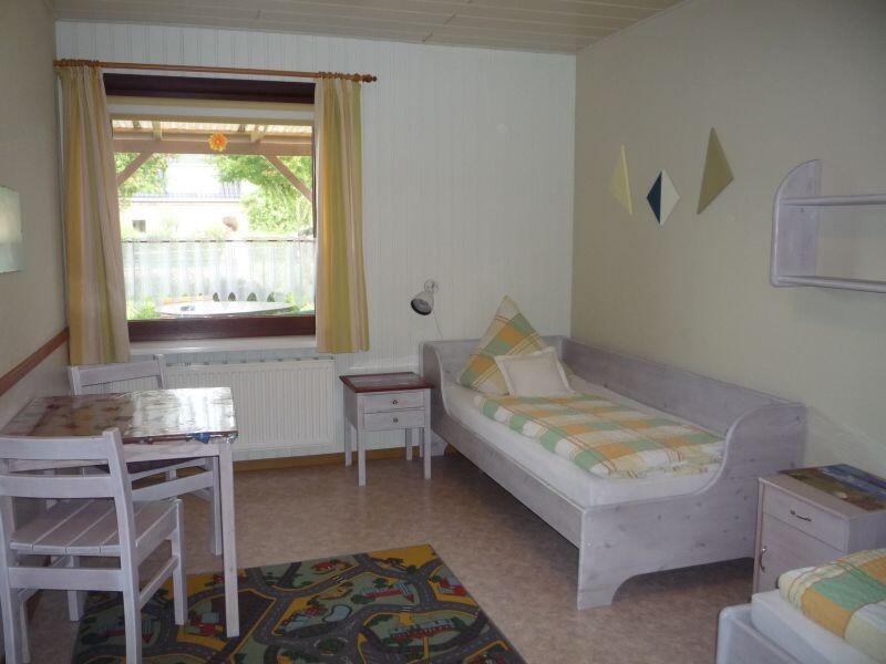Ein drittes Bett kann dazu gestellt werden.Tisch mit 2 Stühlen