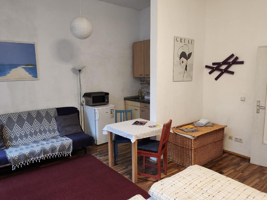Genießen Sie angenehme Zimmer mit Kochnische und Sitzbereich und bleiben Sie über Internet in Kontakt mit dem kostenlosen WLAN der Pension.
