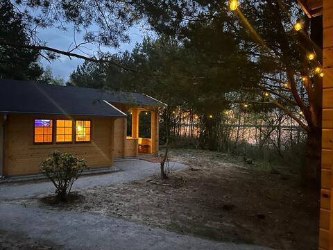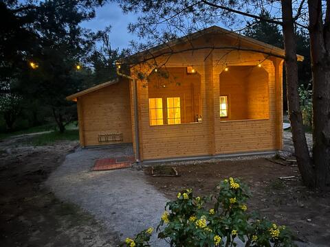 Das Ferienhaus besteht aus Blockbohlen (70mm) mit einem Schlafboden und verfügt über eine einladende wettergeschützte Terrasse. Die Grundfläche beträgt circa 40 m².
