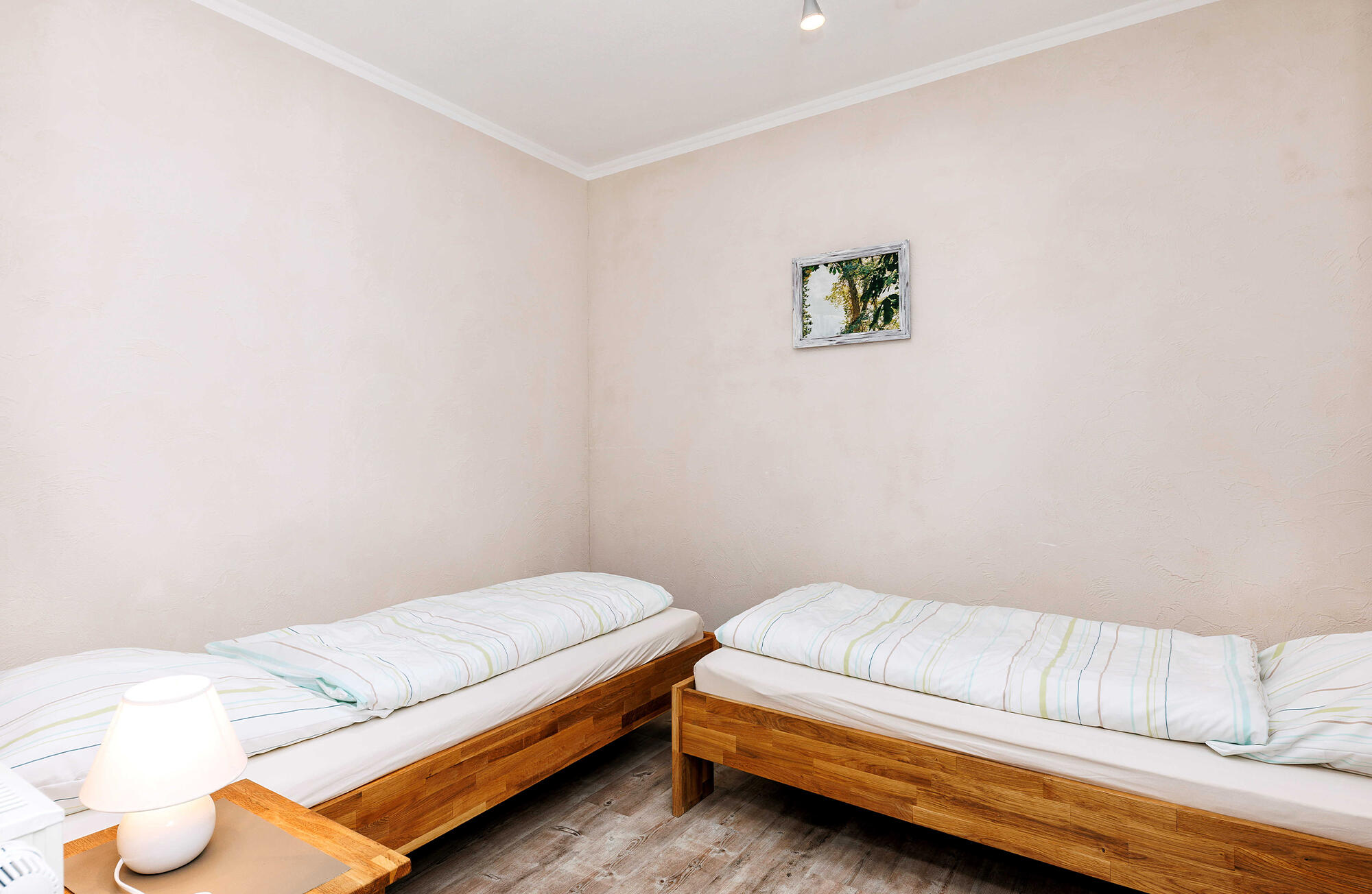 In dem Ferienhaus sind 5 Schlafzimmer mit je 2 Betten, ein großes Wohnzimmer mit einem Doppel-Schlafsofa, eine geräumige Küche, eine Dusche mit WC, ein Bad mit Wanne, Dusche und WC. 2 Kinderbetten können ebenfalls gestellt werden.