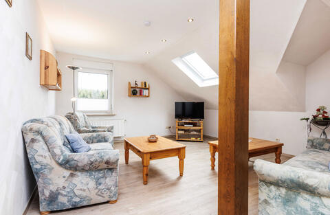 1 Wohnzimmer, ausgestattet mit Schlafsofa und Schrankbett