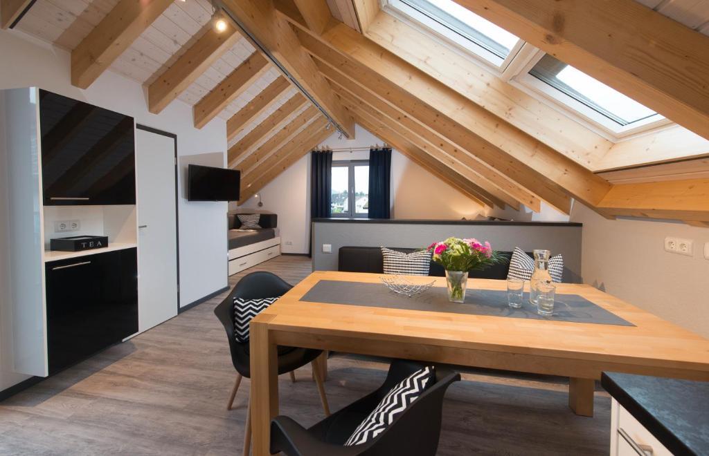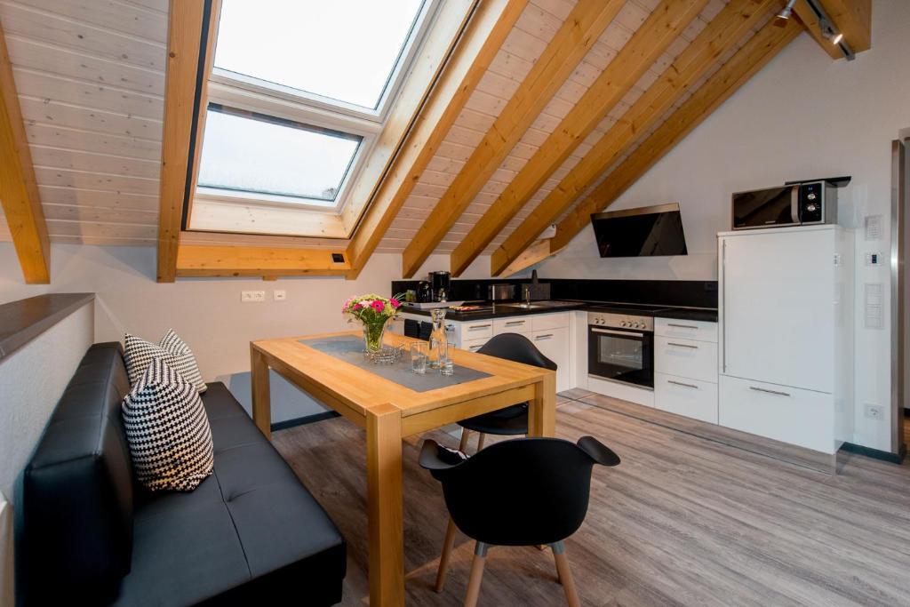 Die modernen und vollständig ausgestatteten Ferienwohnungen besitzen schöne Süd-Balkone oder Terrassen zum Garten. Die kleineren Apartments haben bodentiefe XXL-Fenster für viel Licht. Alle Gäste dürfen unseren Garten und den Grillplatz nutzen.
