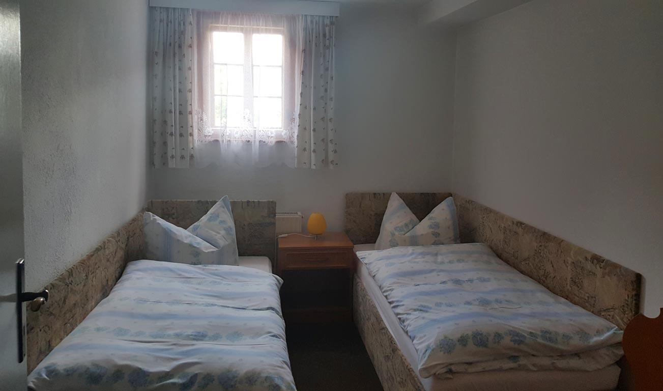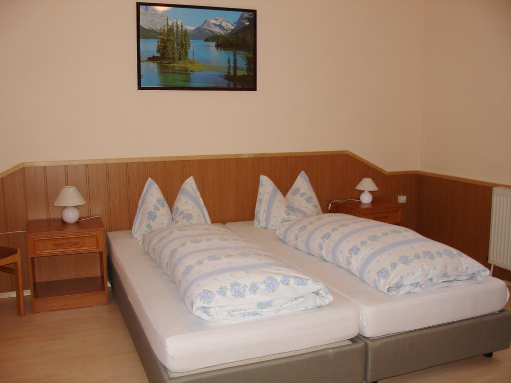 Die Pensionszimmer sind mit Dusche, WC, TV behaglich eingerichtet und die oberen Zimmer sind mit Balkonzugängen ausgestattet. Es stehen 10 Doppelzimmer, 4 Dreibettzimmer und 2 Vier-Bettzimmer zur Verfügung.