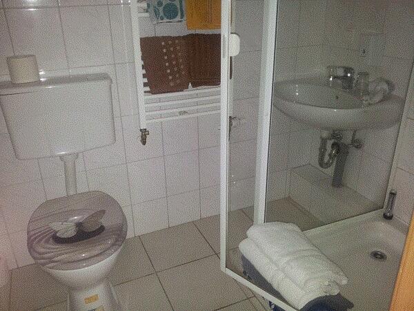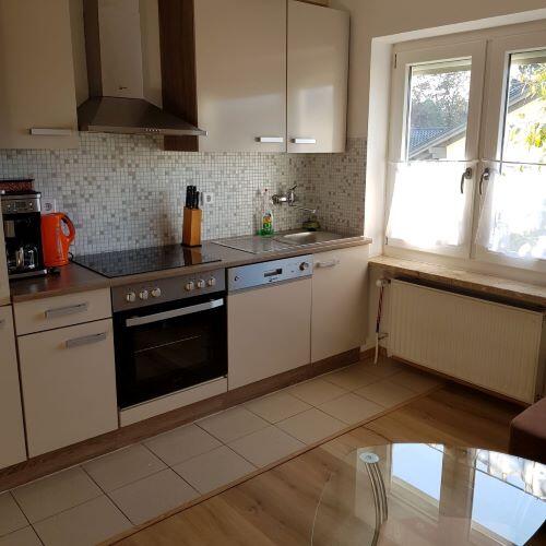 In einem separaten Bau neben der Pension befindet sich diese 70qm große Wohnung. Sie haben einen eigenen Eingang, völlig ungestört von den “normalen” Pensionsgästen. Die Küche mit Mikrowelle, Spülmaschine und E-Herd erfreut jede/n Hausfrau/mann. Zwei getrennte Schlafzimmer sorgen für die notwendige Privatsphäre von Eltern und Kindern. Bei Bedarf stellen wir kostenfrei ein Baby-, bzw. Kinderbett zur Verfügung, das Bad im Erdgeschoß ist nebst DU/WC mit einer Waschmaschine ausgestattet. Im 1. Stock ist ein weiteres Bad mit Dusche und WC. Das Wohnzimmer ist großzügig angelegt mit einer freien Treppe zur 1. Etage. Unsere Ferienwohnung ist auch sehr gut geeignet für Staub-Allergiker. Alle Fußböden sind Laminatböden,
