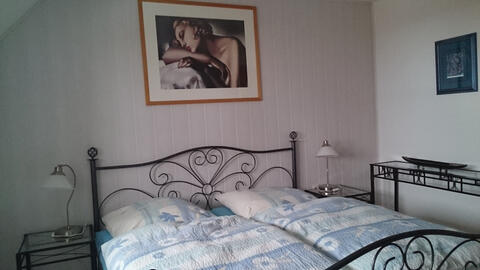 Unsere großzügige Familienwohnung verfügt über ein Schlafzimmer mit französischen Bett, ein geräumiges Wohnzimmer mit einer Schlafcouch, sowie eine Wohnküche und Bad mit Dusche und Tageslicht im Obergeschoss des Hauses. Die Einrichtung ist sehr individuell und besteht überwiegend aus Einzelstücken für Menschen, die das Besondere lieben.
