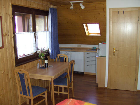 Selbstverständlich liegen Bettwäsche und Handtücher für Sie bereit. In der grossen Wohnküche finden Sie neben viel Platz einen Herd mit Ceranfeld, Backofen, Mikrowelle, Toaster und Kaffeautomat.