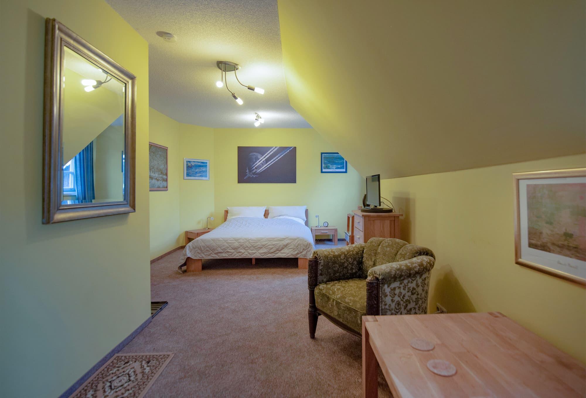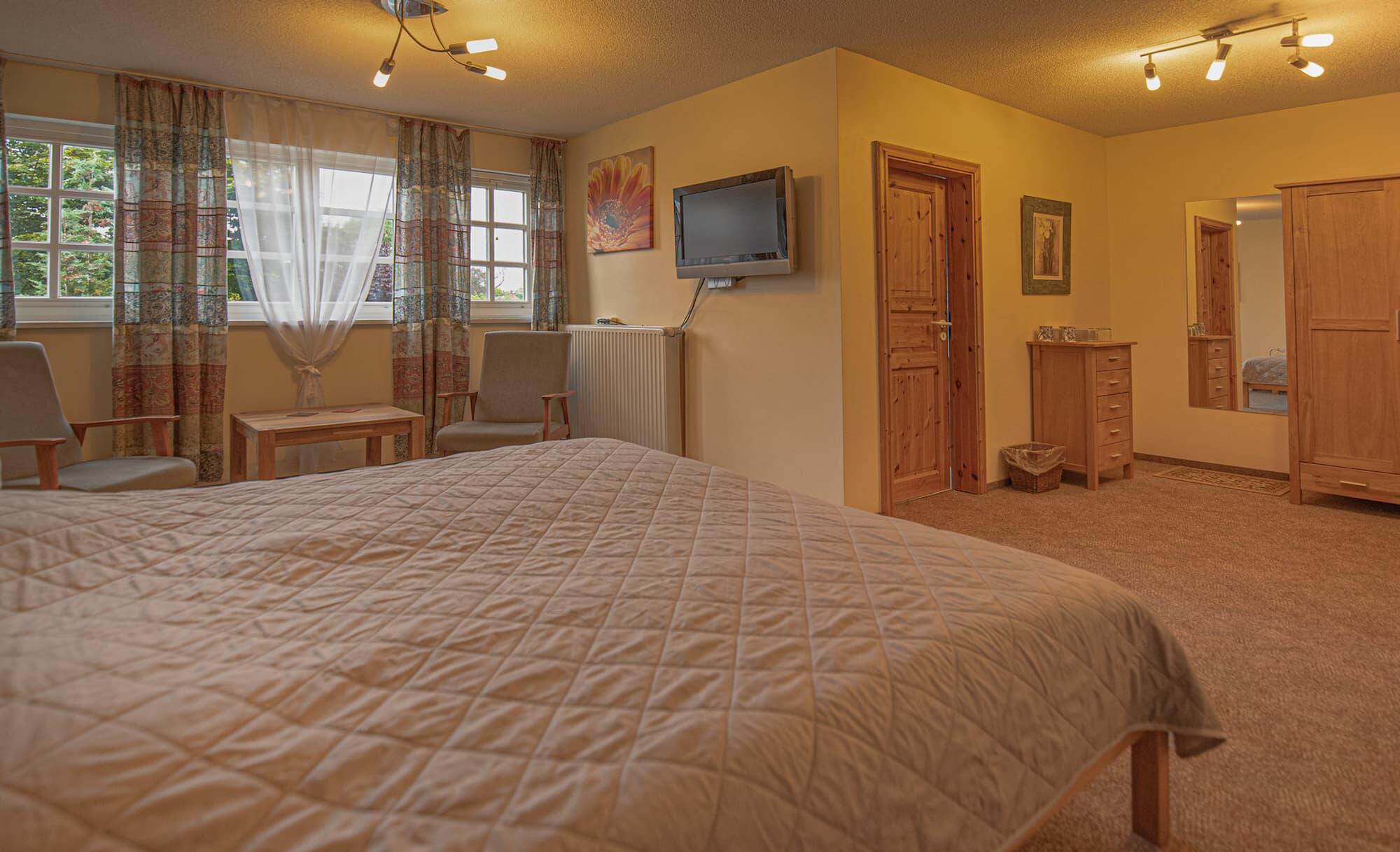 1997 nach Blitzeinschlag abgebrannt und 1998 originalgetreu wiederaufgebaut verfügt es über vier komfortable, gemütliche Zimmer. Zeitgemäße Ausstattung und historisches Ambiente gehen Hand in Hand.