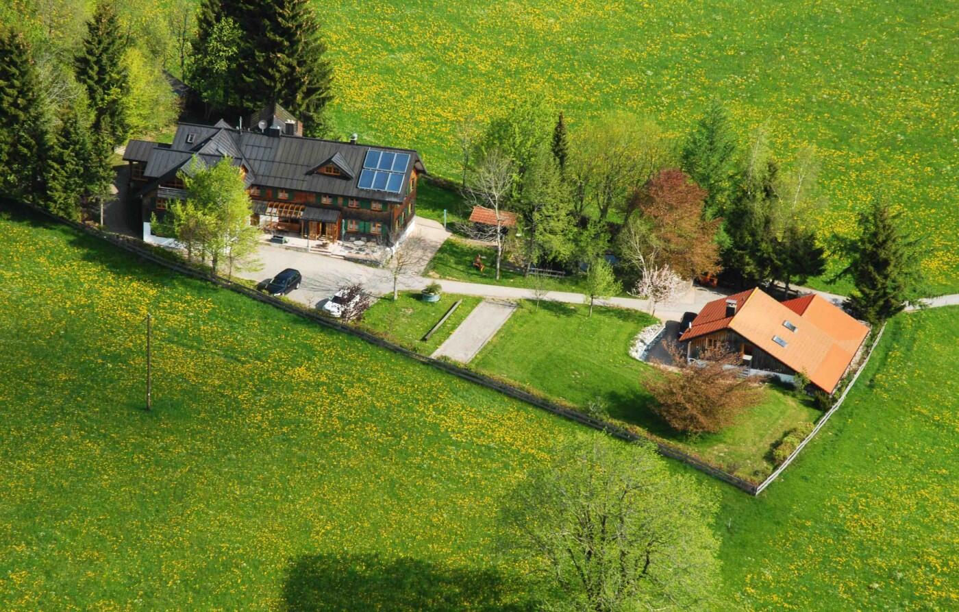 Endlos schweift der Blick über die Hügel und Täler des Oberallgäuer Voralpenlandes, nur begrenzt von der majestätischen Kette der Alpen. Vier individuelle Ferienwohnungen warten hier auf Gäste: Gemütlich und bequem die Einrichtung, modern und ökologisch die Technik.