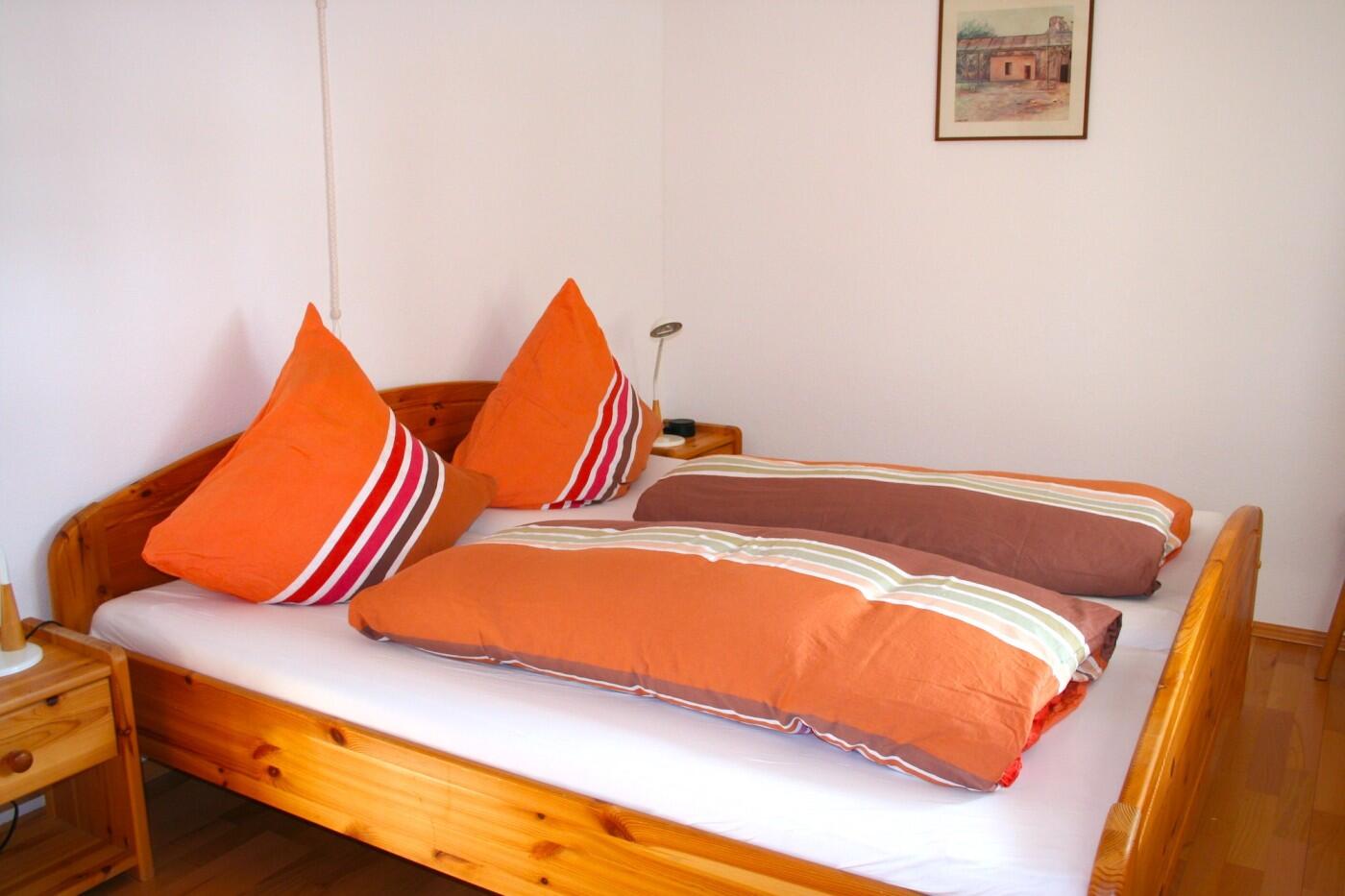 Wohnung (ca. 60 qm) im 1.Stock; Wohnraum mit Eßecke und offener Küche, Bad, 2 Schlafzimmer (eines mit Doppelbett, eines mit Stockbett), Holzböden, TV und Radio, Spülmaschine, kostenfreier Internetzugang