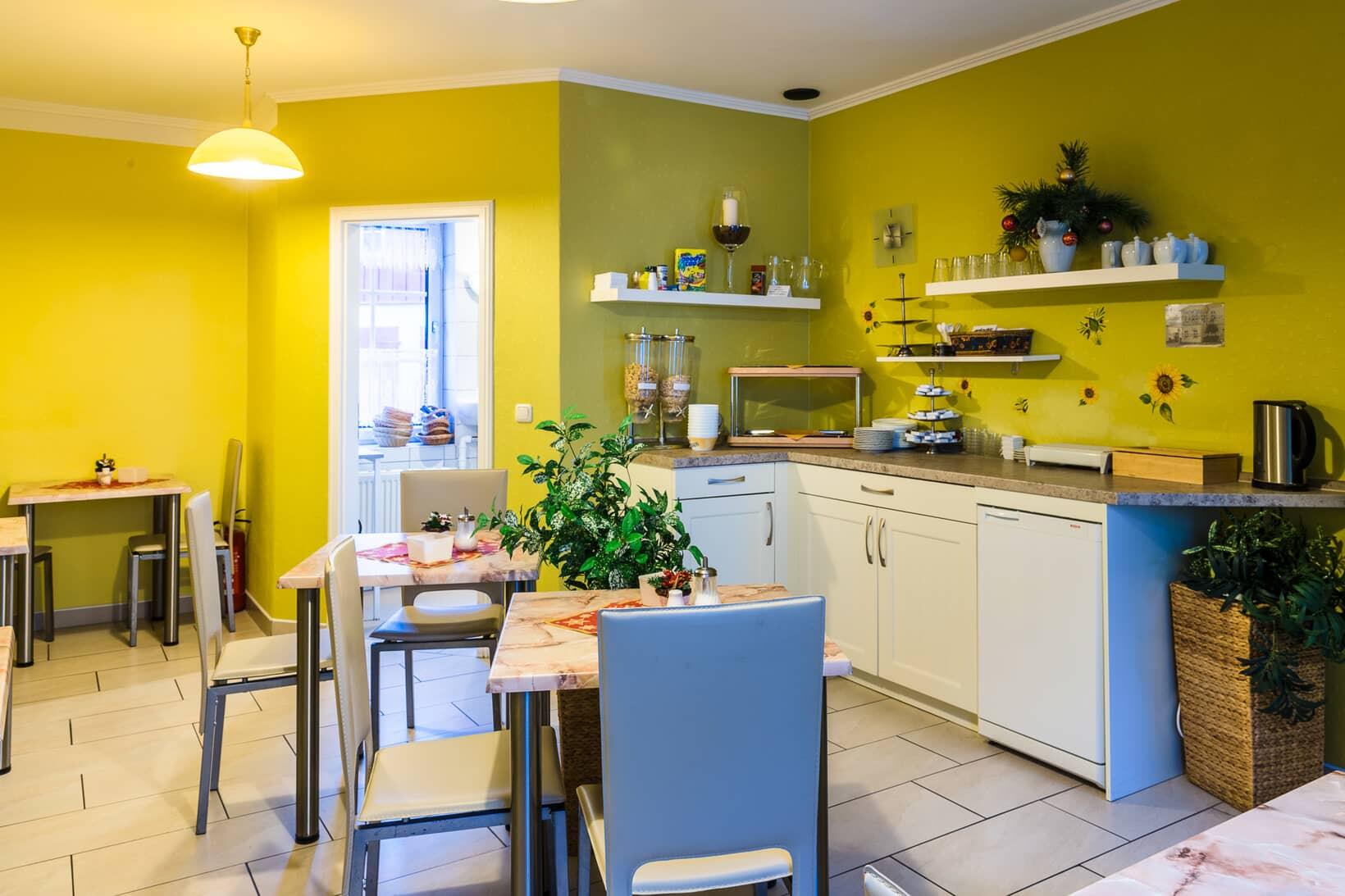 Entspannen Sie in den hell und freundlich gestalteten Räumlichkeiten und genießen Sie in aller Ruhe im Frühstücksraum das morgendliche Frühstück.