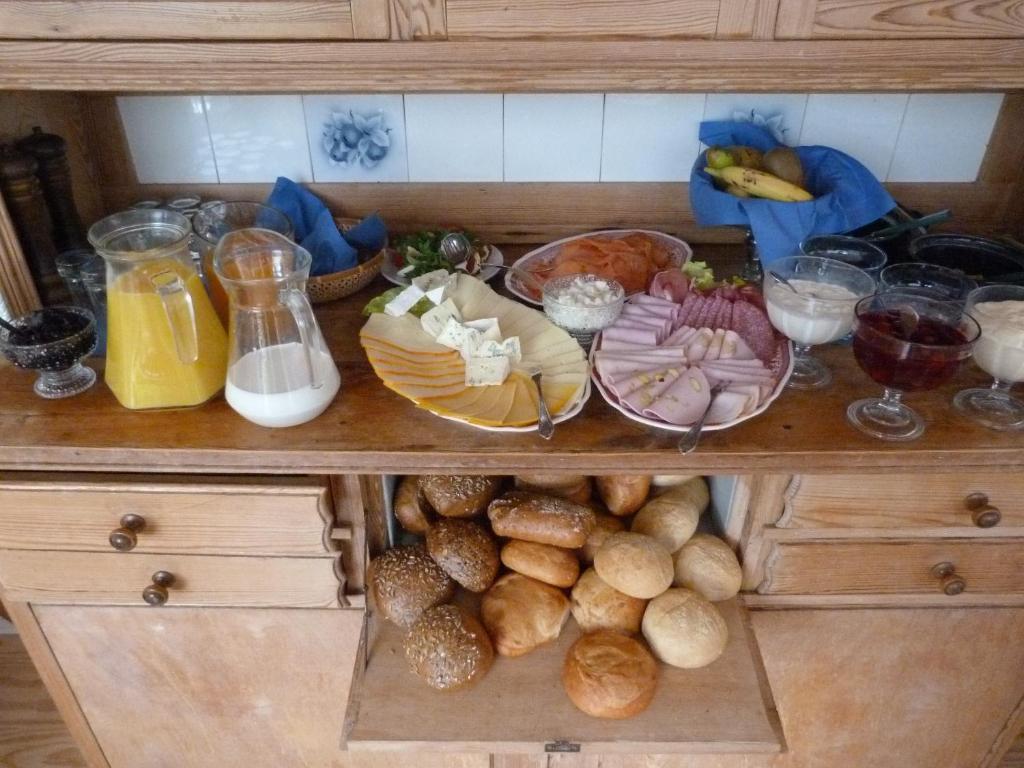 In unserem eleganten Jugendstil-Frühstücksraum erwartet Sie ein reichhaltiges Frühstücksbuffet. Leckere Brötchen, frische Variationen von Aufschnitt und verschiedene Käsesorten, frischer Lachs, selbstgemachte Marmeladen, Müsli, Orangensaft und ein gekochtes Ei sind nur einige Beispiele unserer Buffetauswahl.