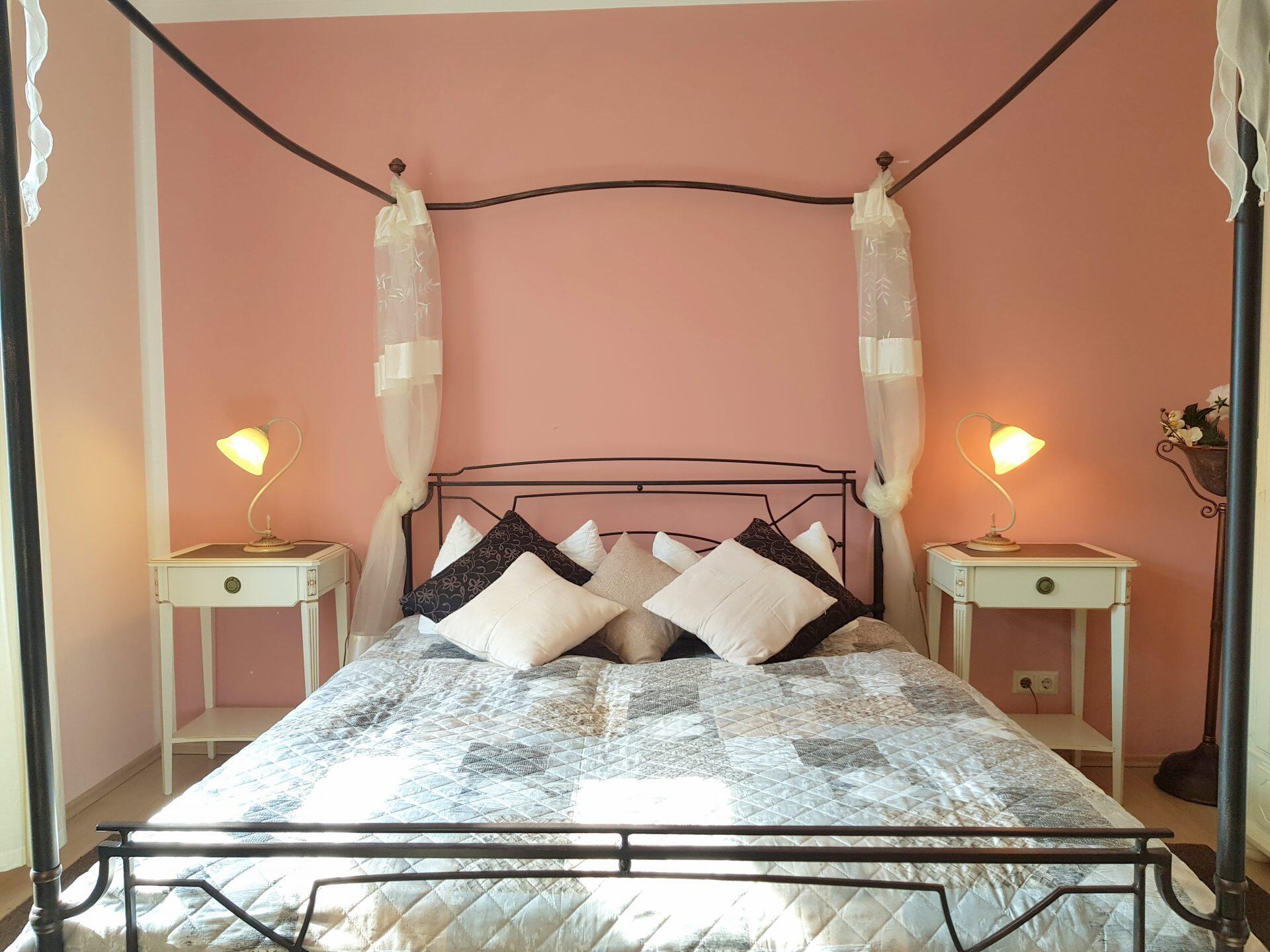 Im ersten Schlafzimmer träumen Sie in einem Himmelbett und in dem zweiten wartet auf sie ein königliches Bett aus Edelmessing.