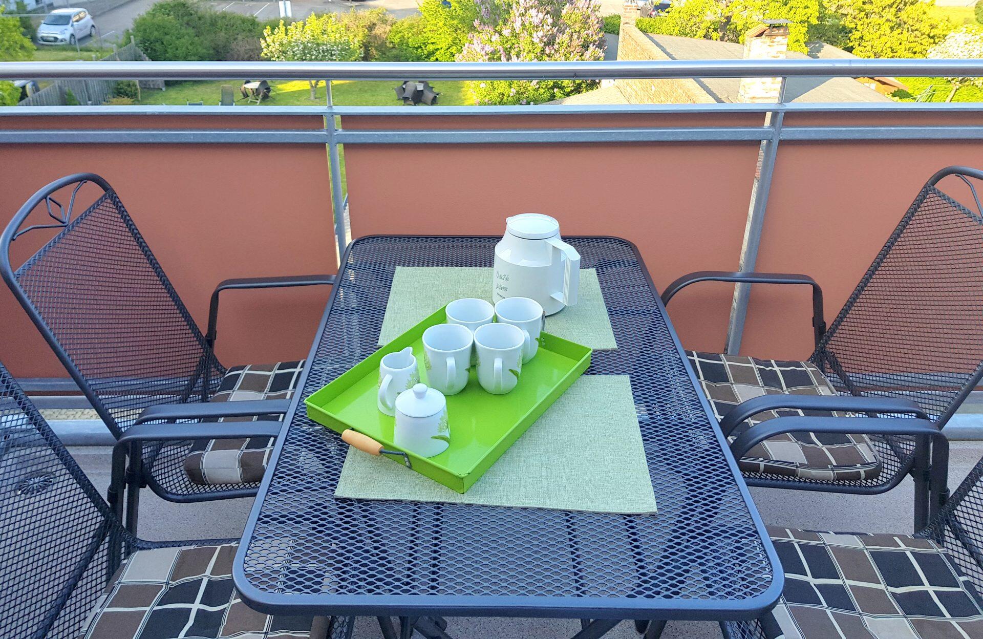 Vom beiden möblierten Balkonen haben Sie einen seitlichem Meerblick. Hochwertige Einrichtung und eine harmonische Farbgestaltung