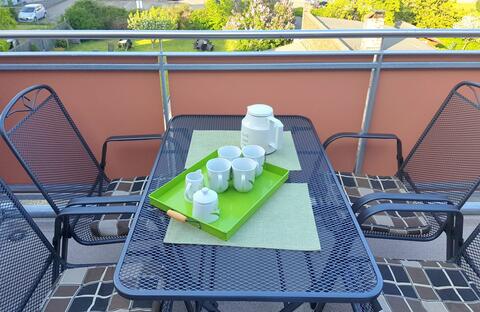 Sie bietet mit Ihren 2 großen Schlafzimmern, 2 Bädern und 2 Balkonen mit Meerblick und einer hochwertigen Wohnküche aus Massivholz mit Esstisch und Sofa-Gruppe genügend Platz für 2 befreundete Paare, oder auch eine Familie mit größeren Kindern, die gemeinsam Ihren Urlaub verbringen wollen.