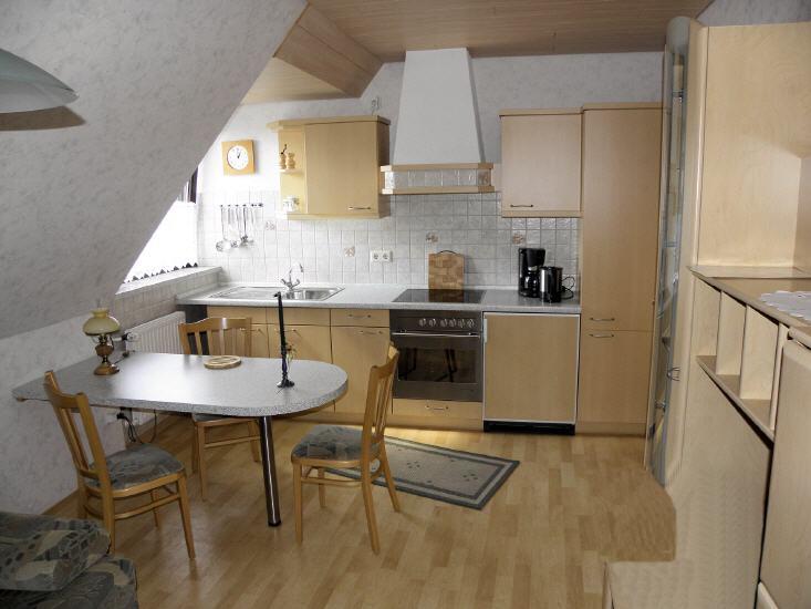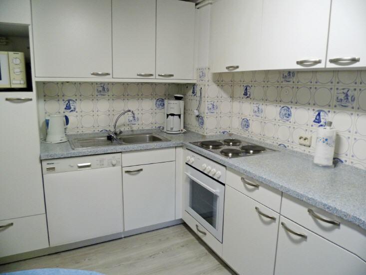 komplett ausgestattete Einbauküche mit Essecke (4 Platten-Herd mit Backofen, Geschirrspüler und Kühlschrank mit 3-Sterne-Gefrierfach ...)