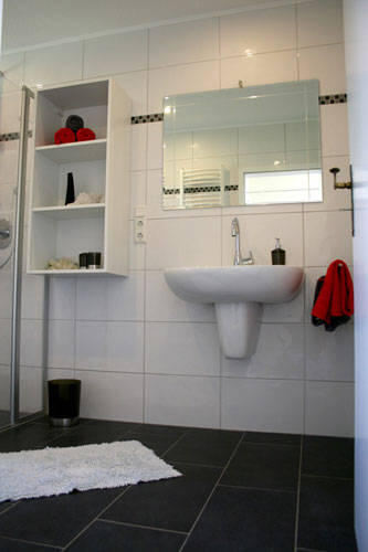 Im Badezimmer finden Sie eine bodengleiche Dusche, WC/ Wachbecken und einen Handtuchheizkörper.