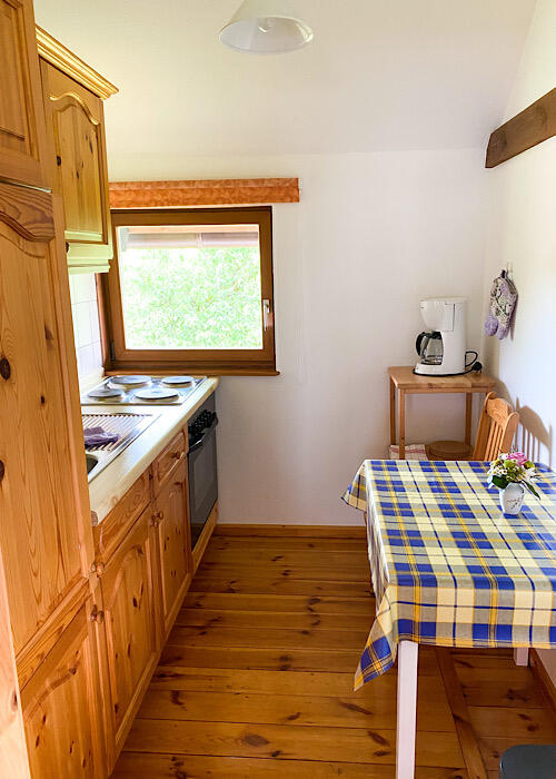 Auf 35 m² können sich 2 bis 3 Personen in unserer gemütlichen kleinen Ferienwohnung mit Terasse erholen. Dort finden Sie ein Schlafzimmer mit Doppelbett, einen offenen Wohnbereich mit Küchenzeile und ein Duschbad vor.