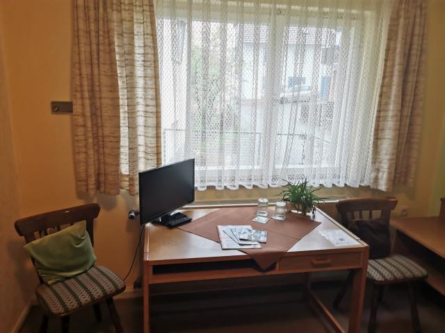 In dem renovierten Fachwerk-Altbau mit separatem Eingang sind Einzel-, Doppel- und Mehrbettzimmer eingerichtet. Alle 8 Zimmer, mit insgesamt 18 Betten, sind mit Dusche, W.C., Föhn, Telefon, TV und WLAN ausgestattet und verbinden modernen Wohnkomfort mit gemütlicher Atmosphäre.