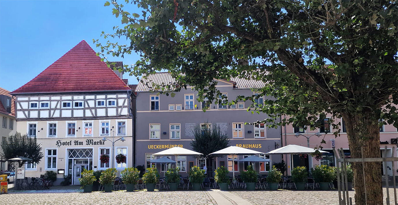 Direkt am idyllischen Marktplatz gelegen, bietet unser 3-Sterne-Superior-Hotel den idealen Ausgangspunkt für Ihren Aufenthalt am Stettiner Haff. Umgeben von historischen Giebelhäusern und nur wenige Schritte vom Stadthafen entfernt, starten Sie von hier Ihre Ausflüge ins Umland, zum Strandbad, zur Insel Usedom oder nach Stettin.